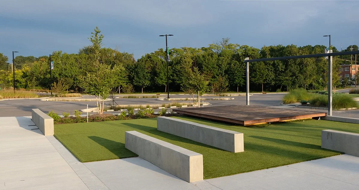 The plaza offers ample free parking, and its central location makes it easily accessible by car, bike, scooter, or rideshare.